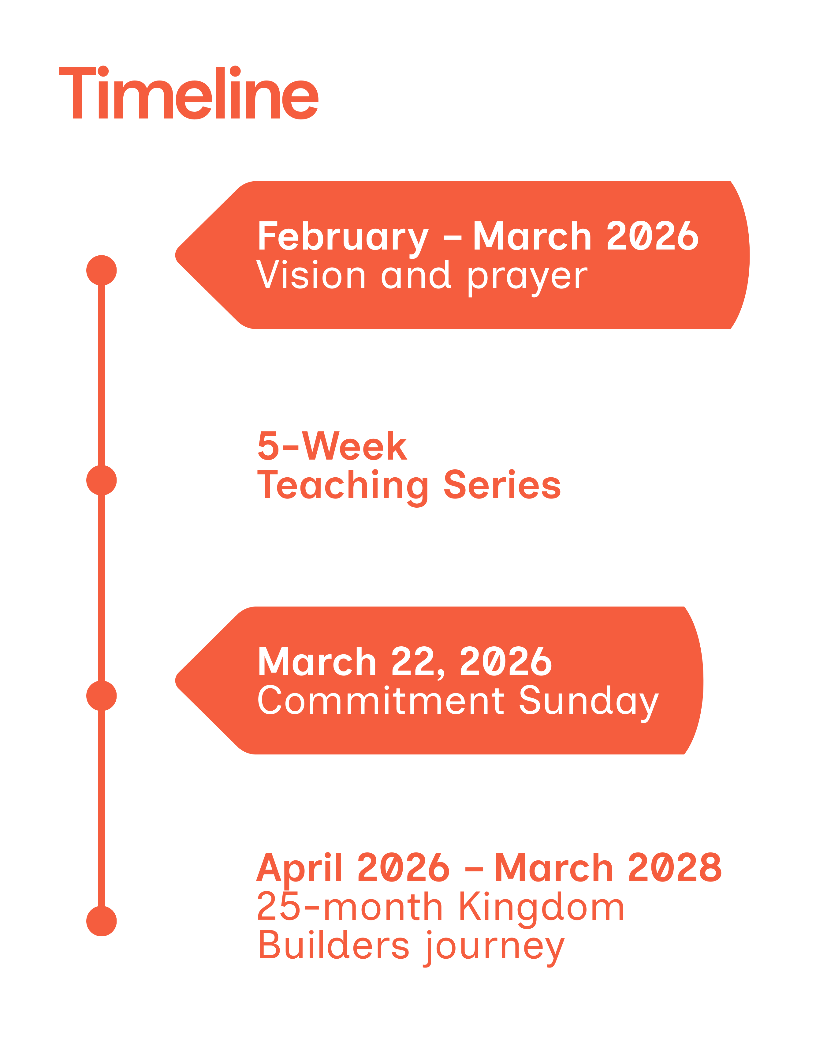 Kingdom Builders is a 25-month generosity initiative inviting everyone at Aletheia Church to give above and beyond their normal tithe to advance God's Kingdom through our church.