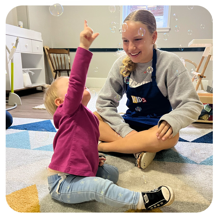 We believe creating a fun environment for kids will help them learn to love and follow Jesus. We think it’s okay to have a good time at church! However, we don’t just want to entertain kids, we want them to learn about Jesus! We utilize Lifeway’s Hyfi curriculum to teach about Jesus and 12 Simple Truths about God and his love for us. Each classroom explores the same topic each week in an age-appropriate way through videos, crafts, and games. Your whole family will leave church chatting together about what God is teaching them!